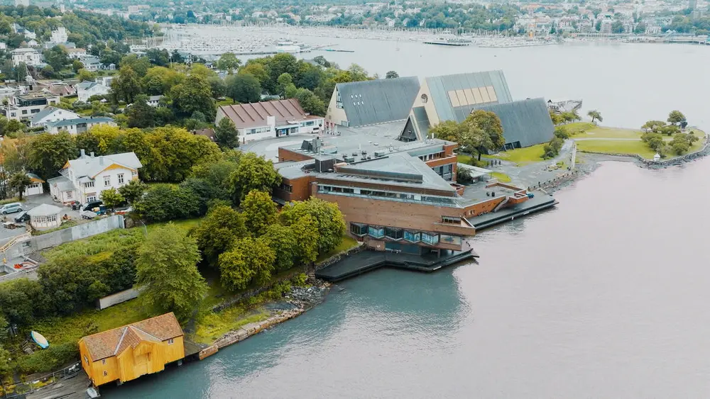 Norsk Maritimt Museum ligger helt nede i sjøkanten, omgitt av bilfrie grøntarealer. Her kan du gå på leting etter skatter i strandkanten eller utforske de mange skulpturene i området!