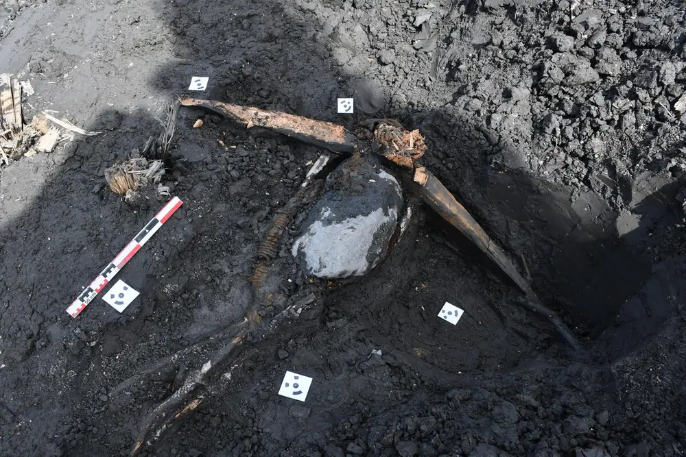 Fig. 2. Killick F151 is one of many stone and wood anchors excavated by the Norwegian Maritime Museum in Oslo. Sjoerd van Riel / NMM