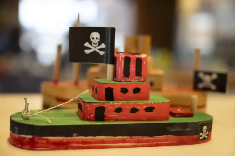 Bli med i verkstedet og bygg ditt eget sjørøverskip med sjørøverflagg – perfekt for kreative sjørøvere!