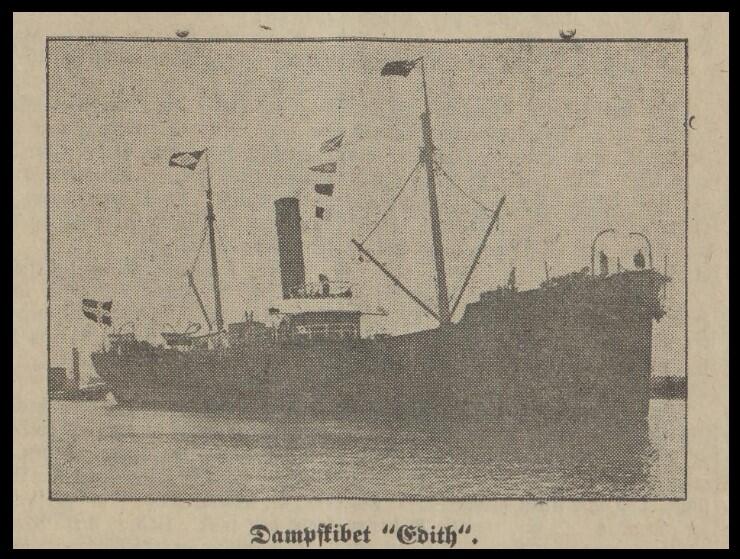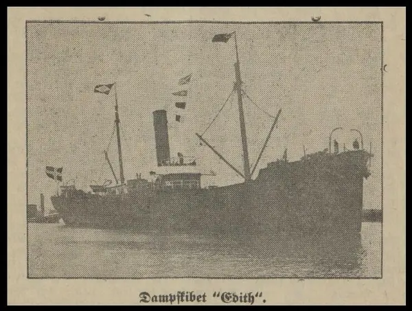 Edith ble bygget i England 1884. Skipet var 78 meter langt og ble brukt som passasjer og fraktskip. Natt til 23. april var skipet lastet med mye forskjellig. Blant annet landbruksmaskiner. Porselen til sanitæranlegg og steintøyservice fra Manchester skulle til Christiania Glasmagasin. Det var også store mengder slagg, salt, svovel, mel og blikk. Skipet var på vei fra Liverpool, men hadde stoppet i Kristiansand for å hente kona til kapteinen. De to skulle på en liten ferie i Kristiania sammen. Paret hadde syv barn hjemme i Kristiansand. Også losen kom om bord sammen med en annen passasjer.
