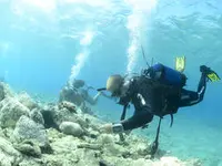 Dykker med båtdel i overflaten. Norsk Maritimt Museum/Jostein Gundersen