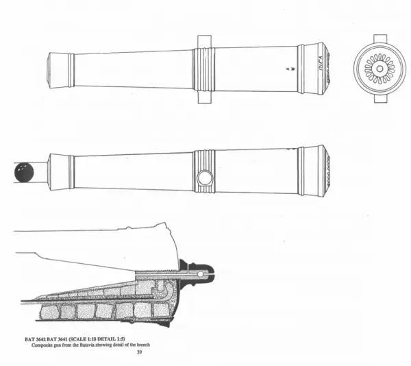 Illustration of one of the cannons from the Batavia, wrecked off the coast of Western Australia in 1629. From Green 1989:39 - 2/2