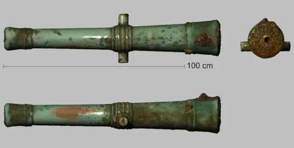 In cooperation with Mandal diving club the Norwegian Maritime Museum retrieved the cannon, which is now undergoing conservation at the museum. At first glance the cannon appeared to be made of bronze. Further examination revealed that the cannon was made of a metal composite. This type of cannon was used by the Dutch East India and Dutch West India Company around 1630. Similar cannons have been found in the Indian Ocean but never in Norway.