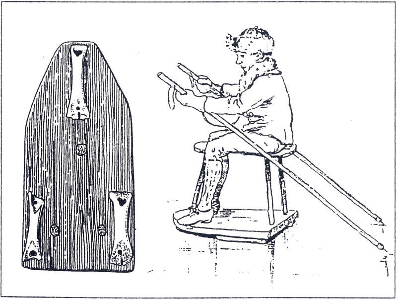 Barn i slede laget av hestekjeve. Maleri fra Pieter Bruegel the Elder. Ice-skaters near the Saint George Gate, Antwerp. Ca. 1558 https://www.metmuseum.org/art/collection/search/338697