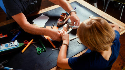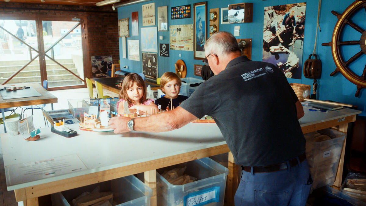 Med maling, lim og piperensere kan du lage din egen krabbe i vår utstilling " Oppdag havet".