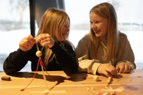 Her kan barna få gjøre sånn som sjøfolkene gjorde, og lage kule ting i naturmaterialer!