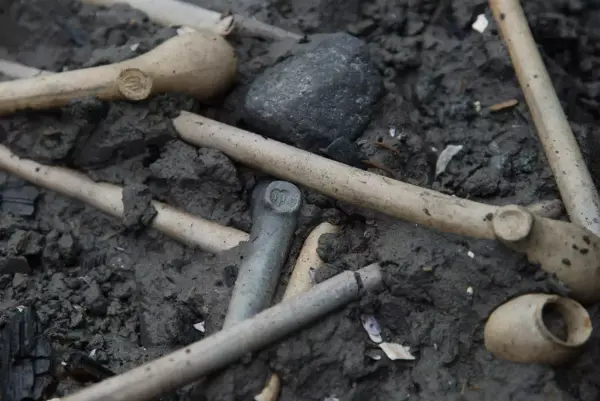 Over tusen brente krittpiper ble funnet sammen med store mengder kull og noen andre brente gjenstander. Brannlaget er knyttet til den store bybrannen i 1624 Norsk Maritimt Museum/Odd Geir Sæther