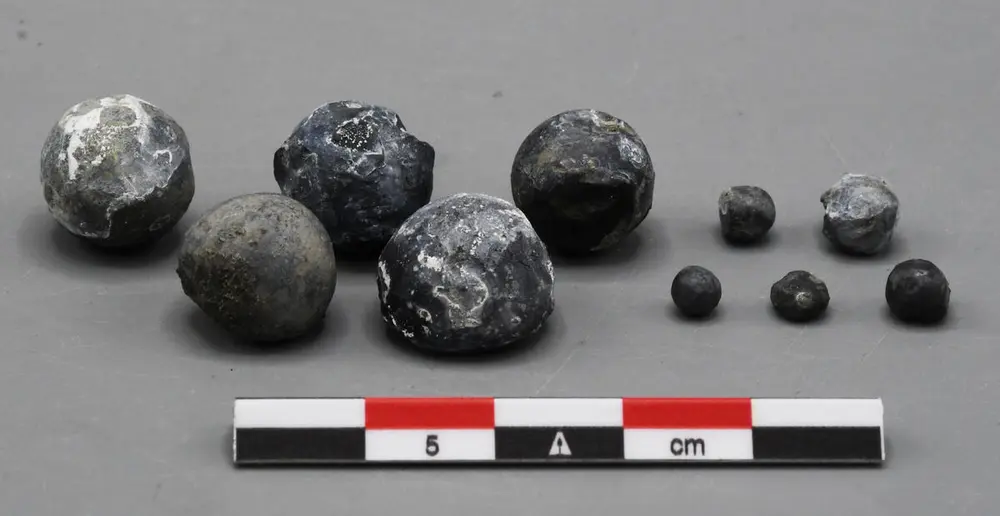 Blykulene varierer i størrelse fra 4 til 25 millimeter. Noen av dem er deformerte, og har tydelig truffet noe eller noen. Andre er antakeligvis bomskudd og har sunket ned i leiren, for å så bli funnet igjen av oss, fire-fem hundre år senere.