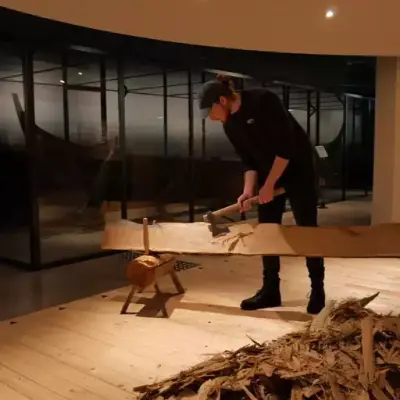 Hoveddelen av utstillingen er en rekonstruksjon av vikingbåten fra Gokstadhaugen. I KLINK båtbyggeri du få et innblikk i hvordan håndverksteknikker formet båtene og hvordan båtbyggerne jobber for å rekonstruere dem.